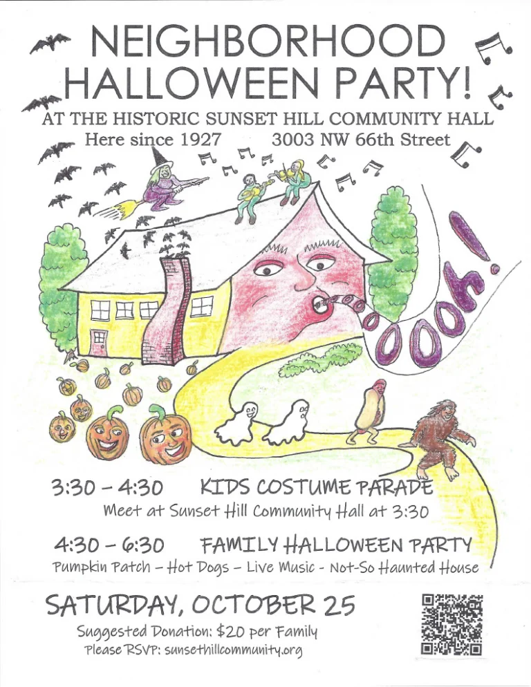 4:30 – 6:30 PM Neighborhood Party at Sunset Hill Community Hall Building