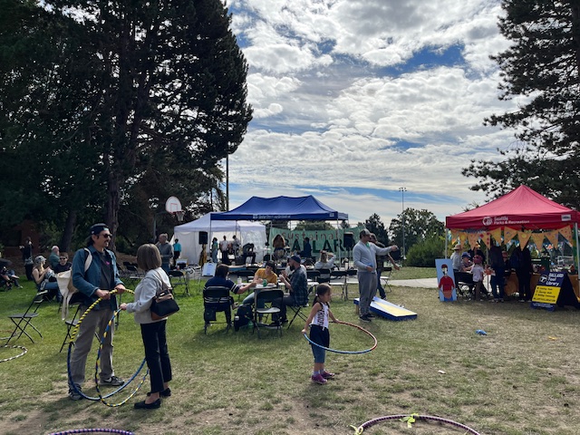 We had dedicated local businesses sponsor and exhibit at the Festival. Our Tool Library neighbor, Mimi’s Zero Waste brought dried bulk grains for crafting artwork and hosted Ocean Bingo. Full Circle Farm shared the abundance of local produce available at harvest time and all year long thanks to our local farmers like Collins Family Orchards who donated apples for our Cider Press. The cider was so delicious! We hope you enjoyed a cupful or two at the Fest and took some home to enjoy later. Chiro One Wellness offered advice on wellness and health. Renewal By Anderson had a very popular Axe throwing game and offered free consultations for home improvements that increase energy efficiency. Additionally, we thank Crown Hill Chiropractic, Electric & Folding Bikes NW, Firefly Kitchens, Limback Lumber, Majestic Bay Theater, New Roots Organics, Swansons Nursery, and Town and Country Markets Ballard for sponsoring the event and/or providing wonderful raffle prizes. It takes a dedicated and caring community to create a wonderful place to live, work and play-THANK YOU!